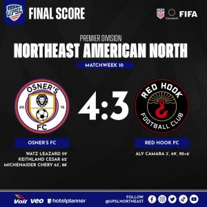 BROOKLYN, NY, UNITED STATES, October 22, 2025 /EINPresswire.com/ -- In what can only be described as a landmark achievement, Osner’s FC has secured a spot in the UPSL Premier Northeast American Division playoffs in its very first season at that level. A triumphant 4–3 victory over Red Hook FC, complemented by strong performances throughout the campaign including a key win over Brooklyn FC II, has positioned Osner’s FC in 4th place out of the six playoff-qualifying clubs. The reward: hosting the quarterfinal against AFC Academy on the weekend of October 25–26, 2025.— Head Coach Walkin Joseph