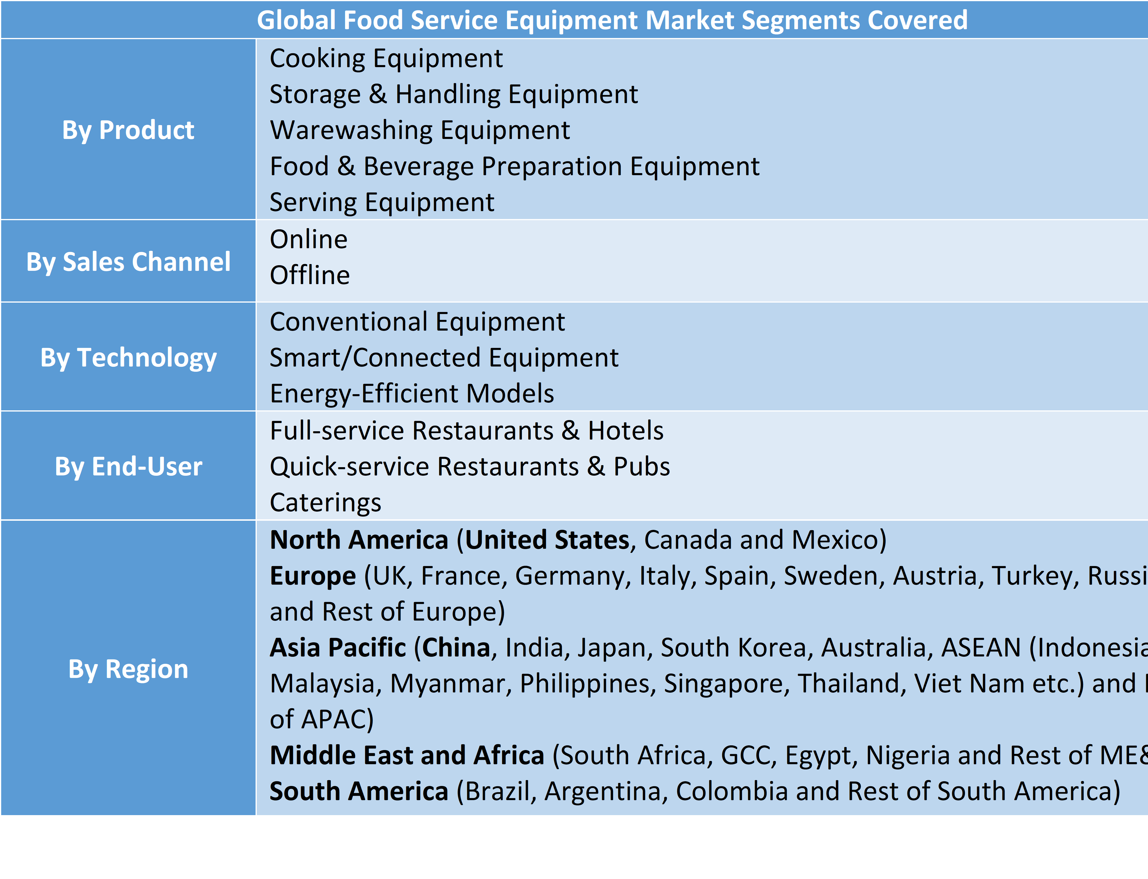 Global Food Service Equipment Market Segmentation: Key Products, Energy-Efficient Technologies, Smart Kitchens, and End-Users Driving Growth Worldwide